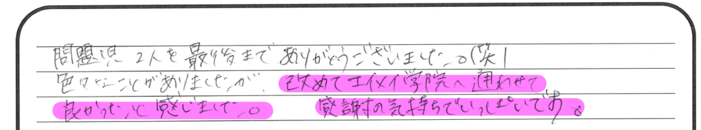 改めてエイメイ学院へ通わせて良かったと感じました。