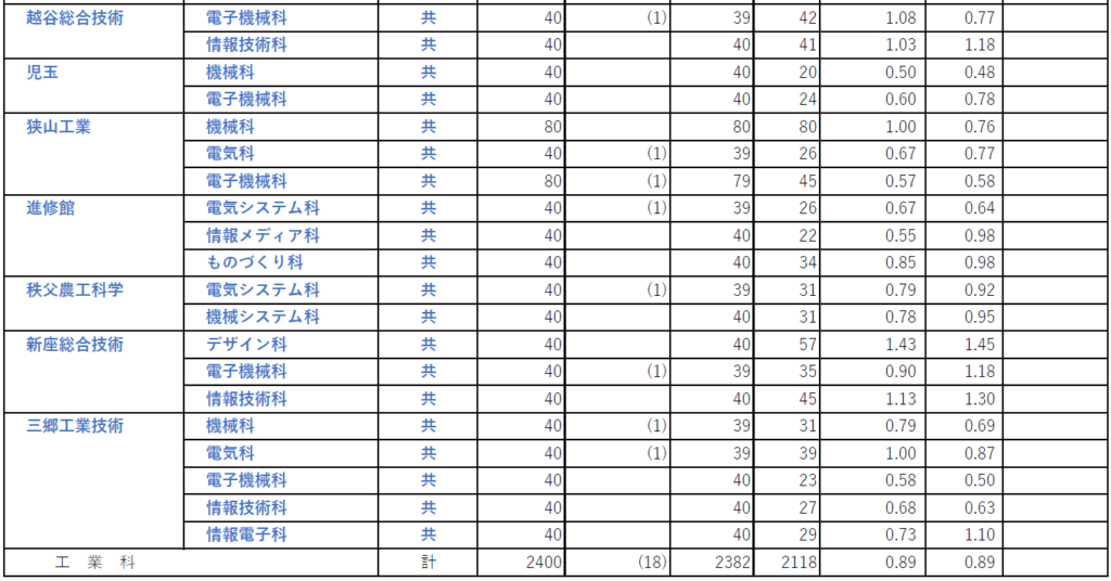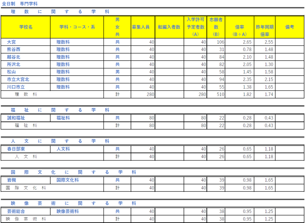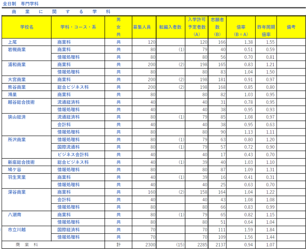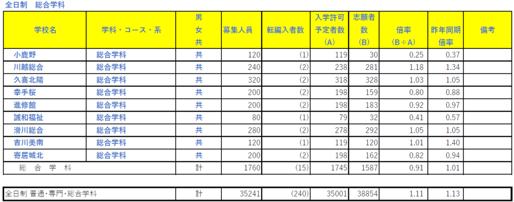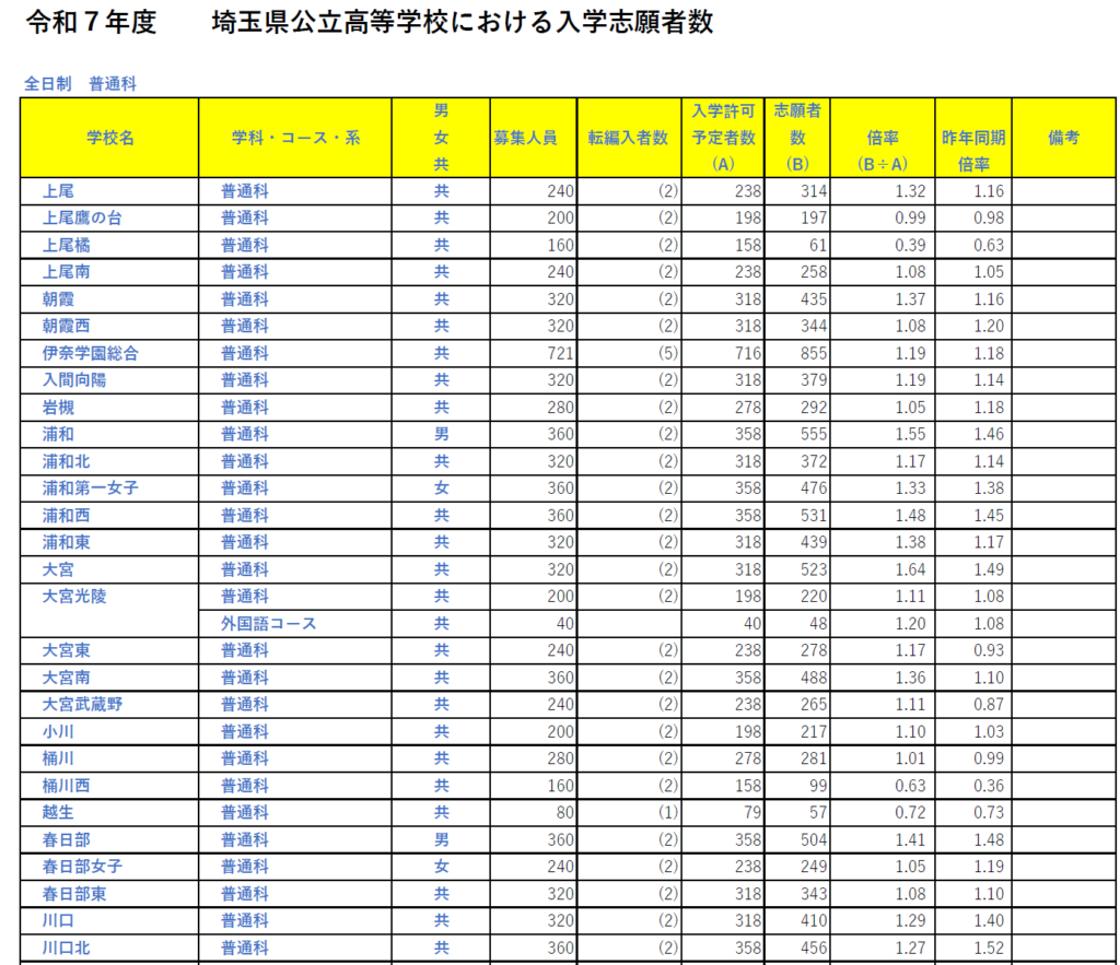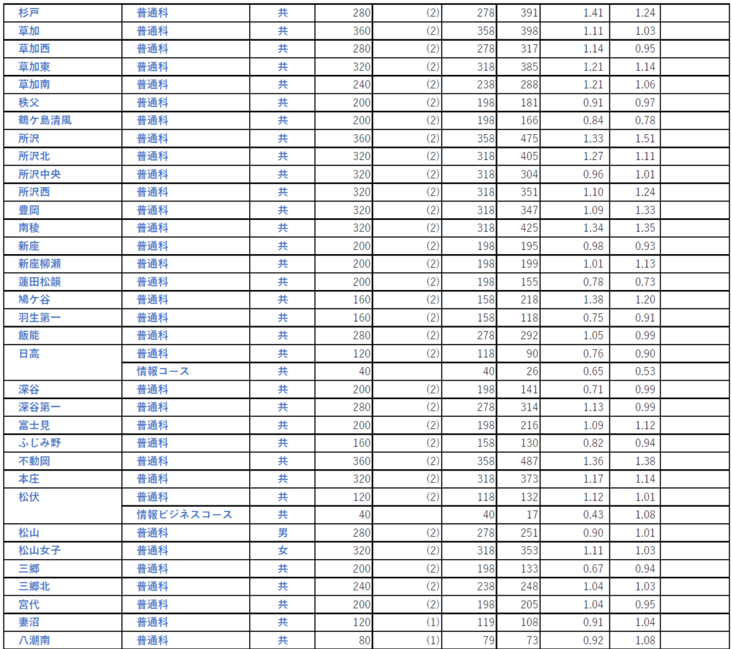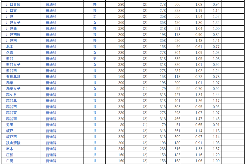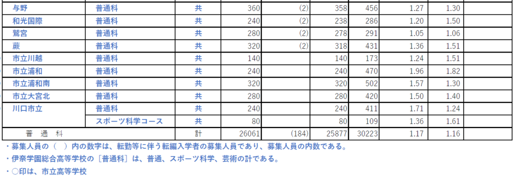 ふじみ野地域の中学生が受ける普通科の高校に目を向けると