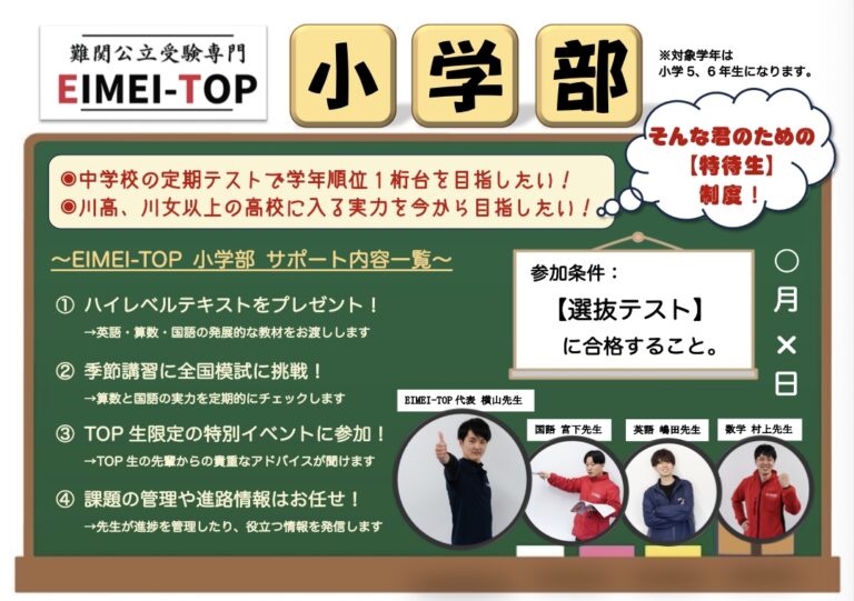 EIMEIグループの数学科責任者のASKこと村上先生がまとめていますのでこちらをご覧ください!