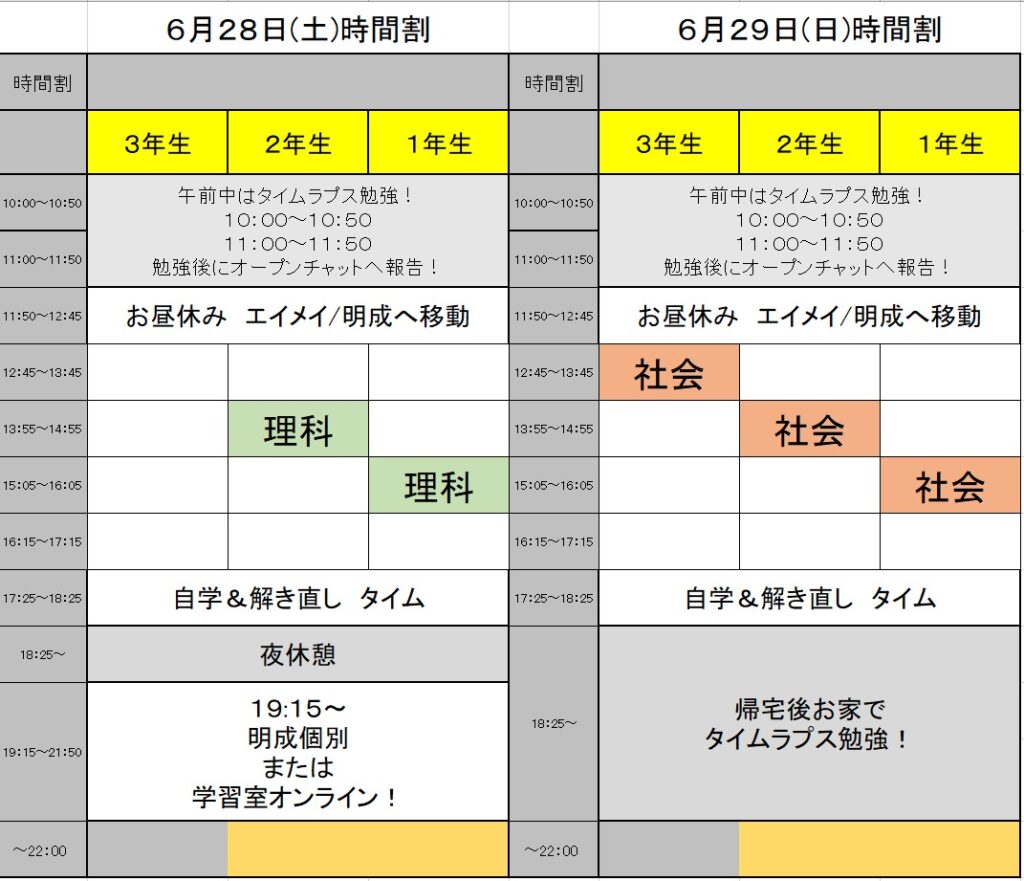・テスト直前の土日→ 勉強合宿&テスト対策
