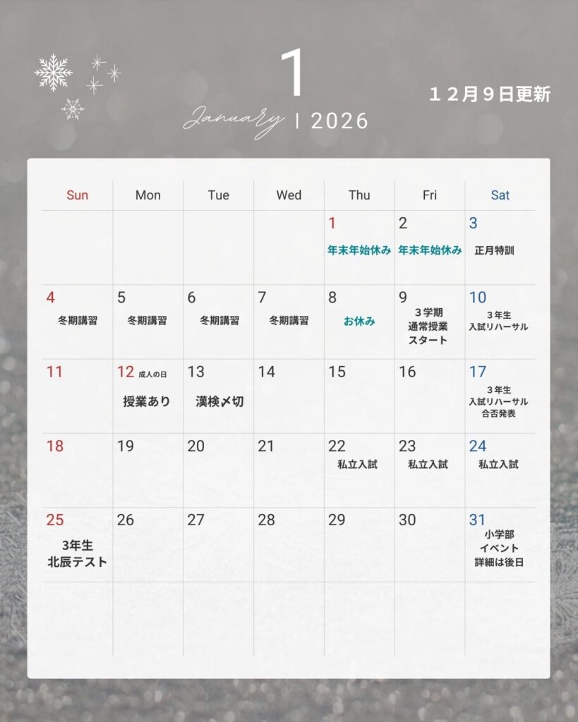 4日(日)~7日(水)冬期講習