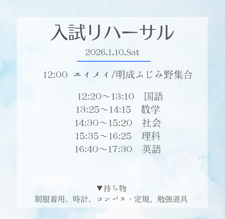 明日1/10に第2回入試リハーサルを実施します!
