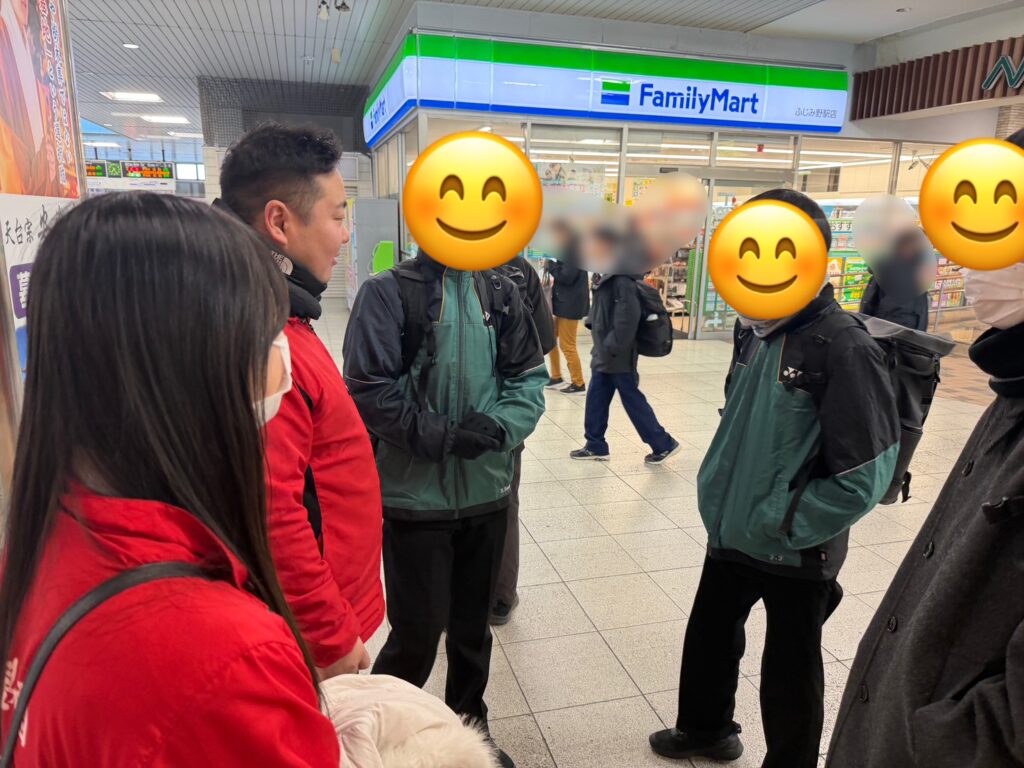 先生たちも早朝からふじみ野駅、上福岡駅で