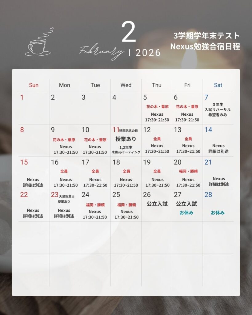 【ふじみ野】3学期学年末テスト Nexus勉強合宿日程