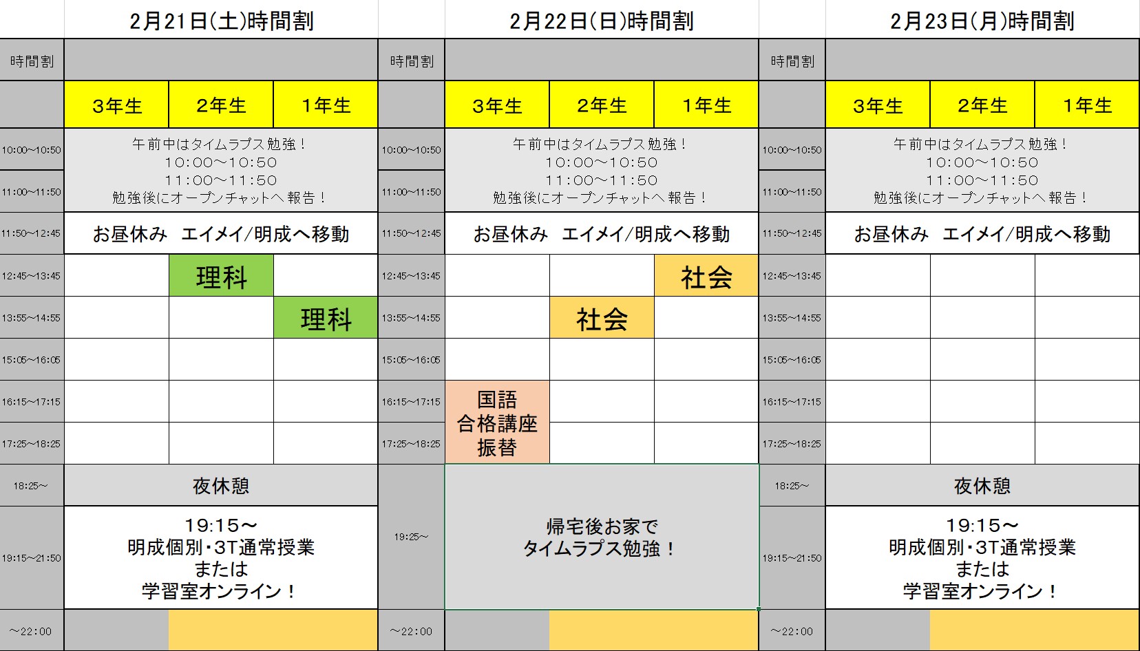 17:30〜21:50で毎日通塾となります!