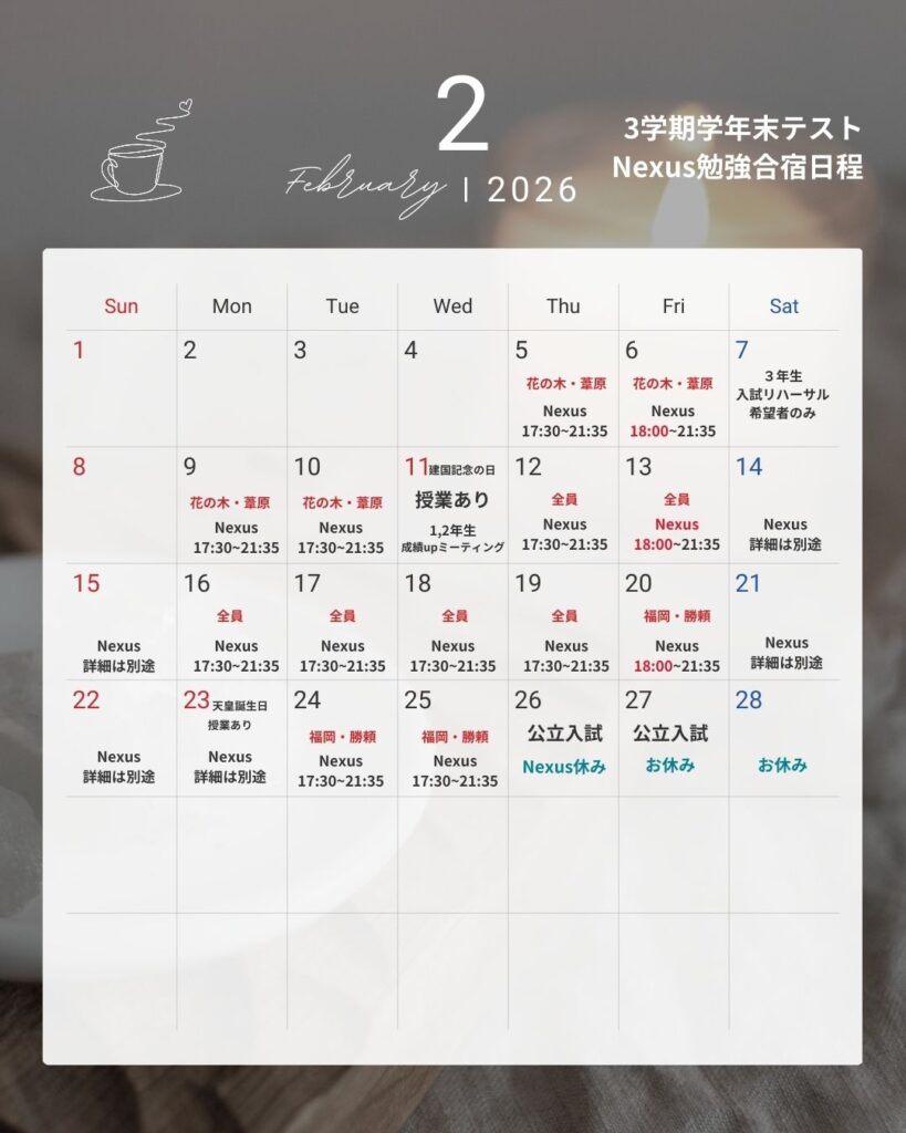 はNexus振替休み・授業日数調整日でお休みなります!