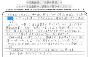 中学1年の途中から、他の塾からの転塾でしたが、今まで通っていた所は違うと帰宅した娘が言っていました。