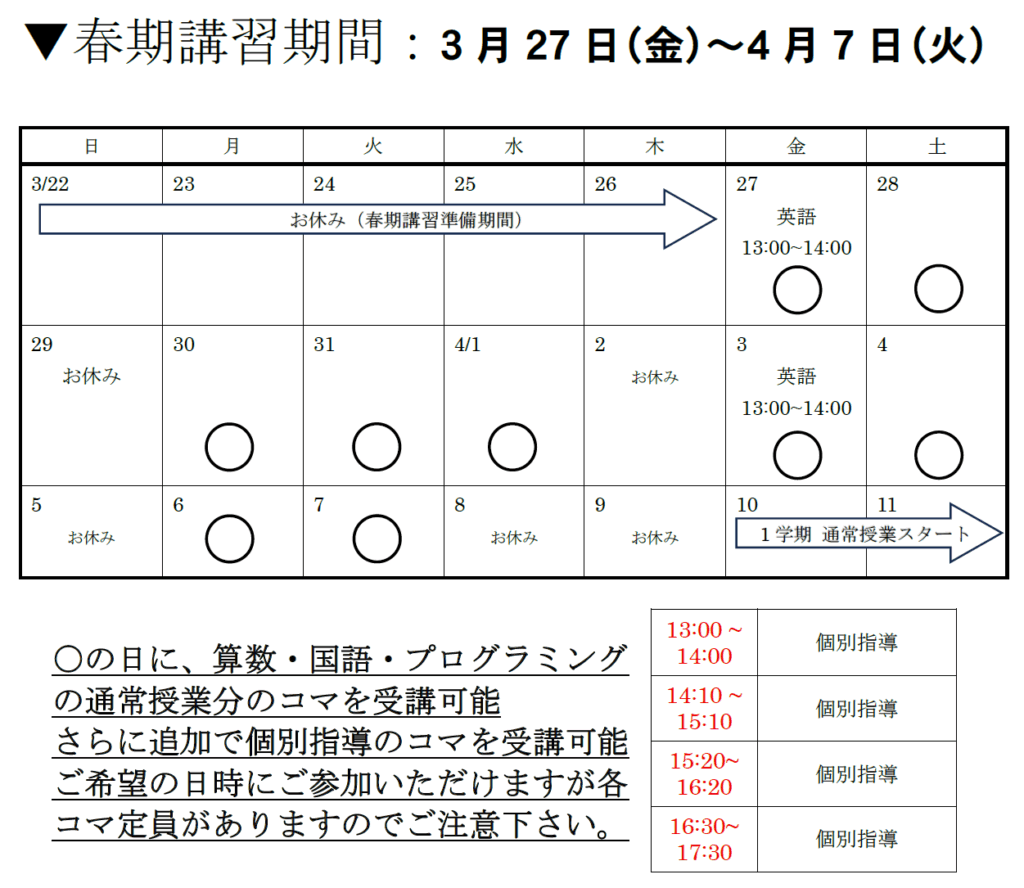 の2本柱で春休みの授業を行っていきます!