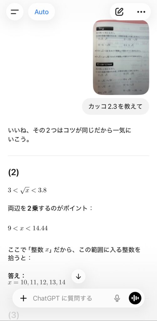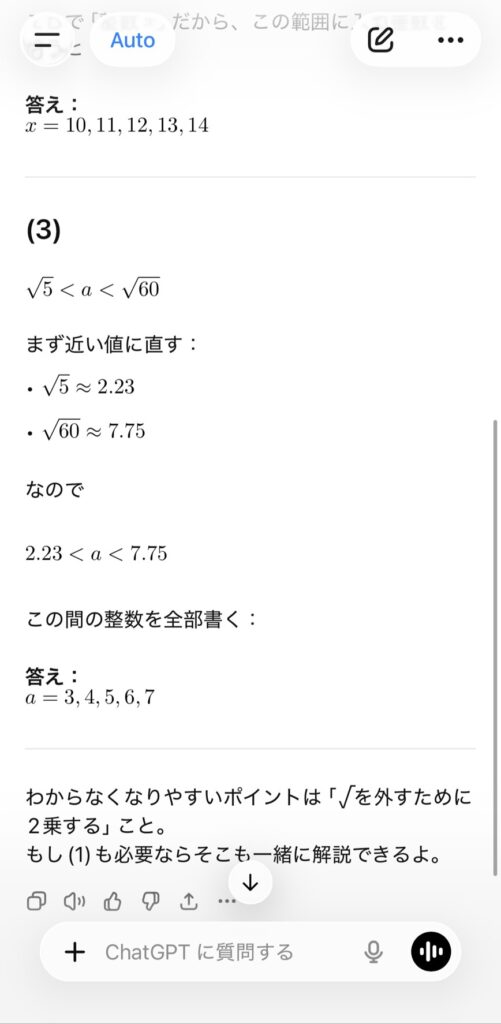 普通のAIに答えだけをすぐに聞くこととは雲泥の差になります