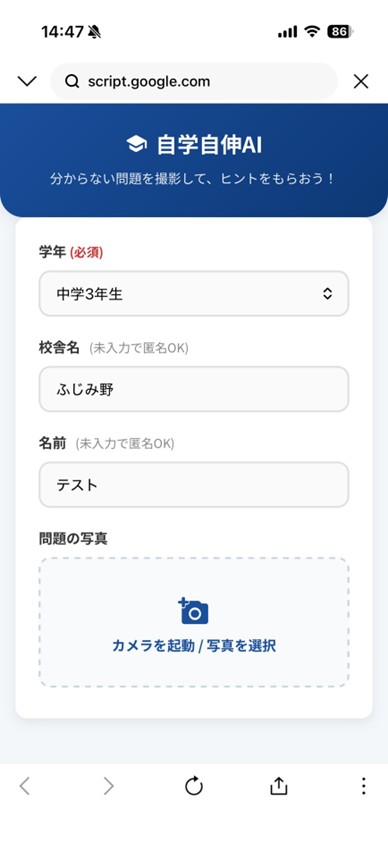 まずは自分の学年を入力します