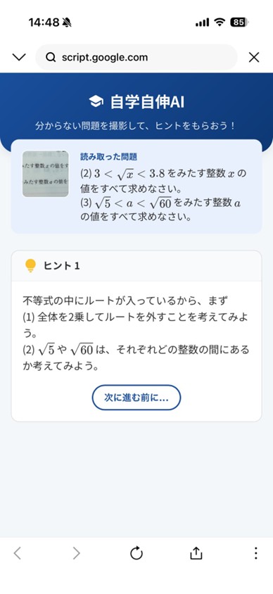 では、EIMEIの『AI質問アプリ』に同じ問題を投げてみましょう