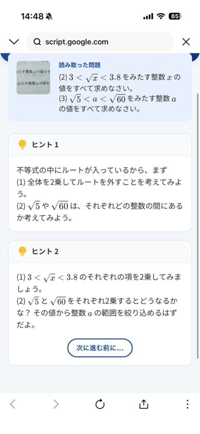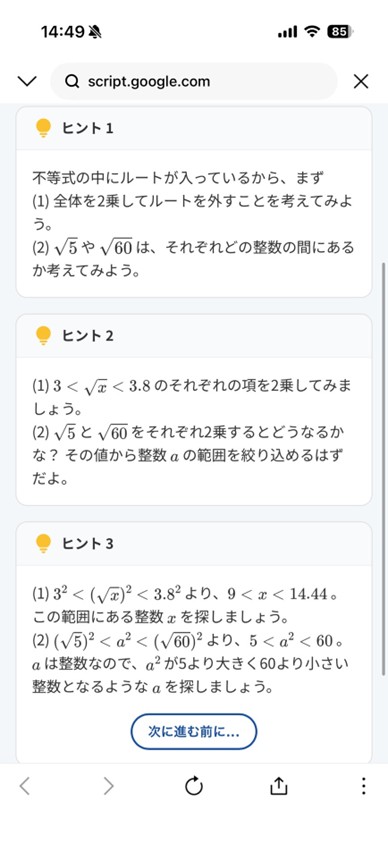 ヒント1でも解き方がわからない場合は次に進みます