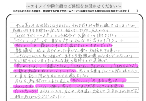 【ふじみ野校舎】「親から見たエイメイ」~受験を終えた保護者からシリーズ⑧~