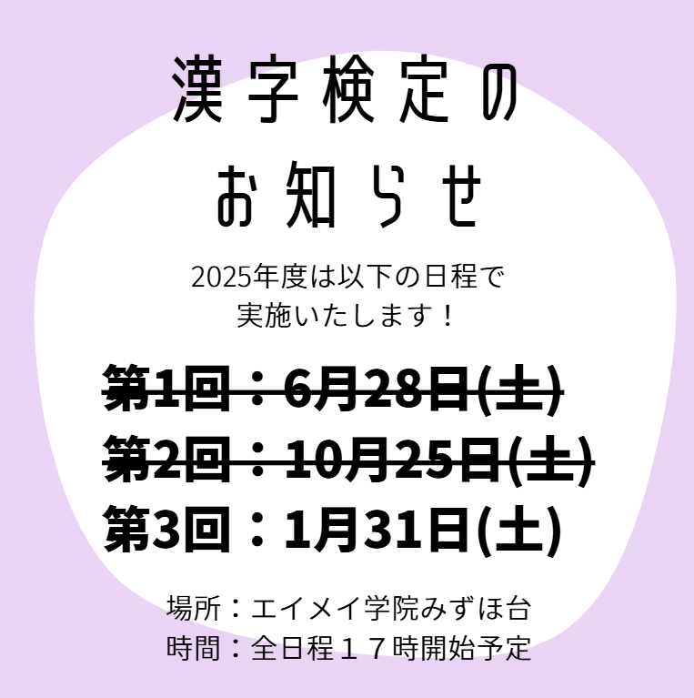 エイメイ学院では、漢字検定を受検することができます📝 (別校舎ですが、英検も受けられます) 漢字検定を受けるメリット、オススメの勉強法については、 以前にもブログで述べましたのでコチラ👇️を参照ください 定期 […]