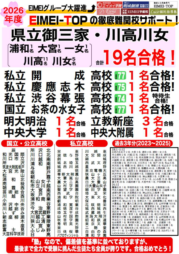 2026年度入試 EIMEIグループ全体 合格実績掲載
