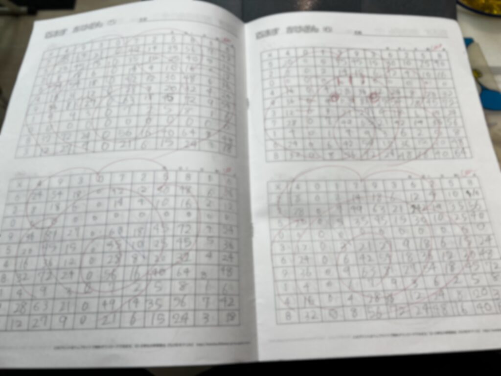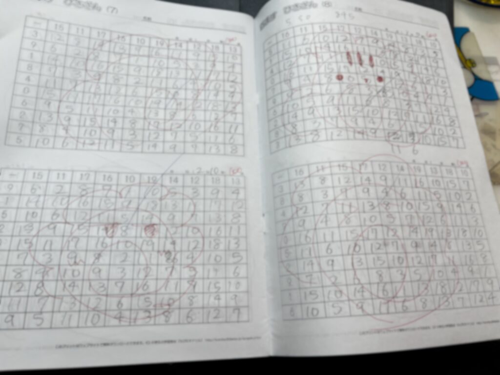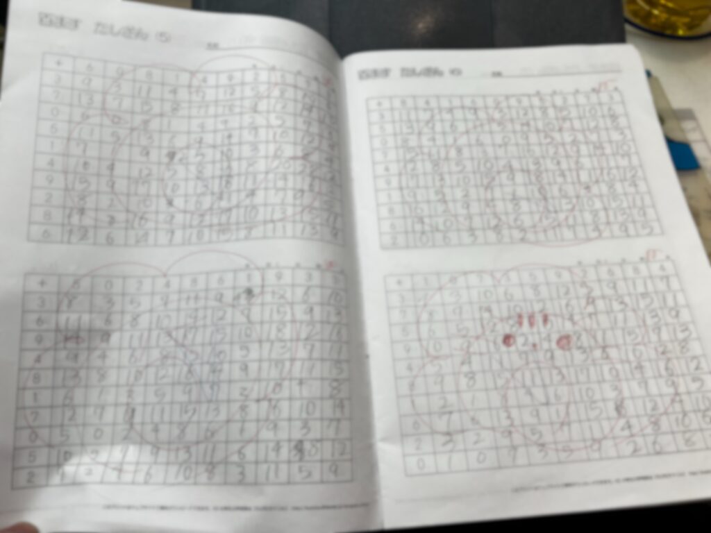 こんな感じで、渡している100マス計算練習冊子を全部解いてきました!!!