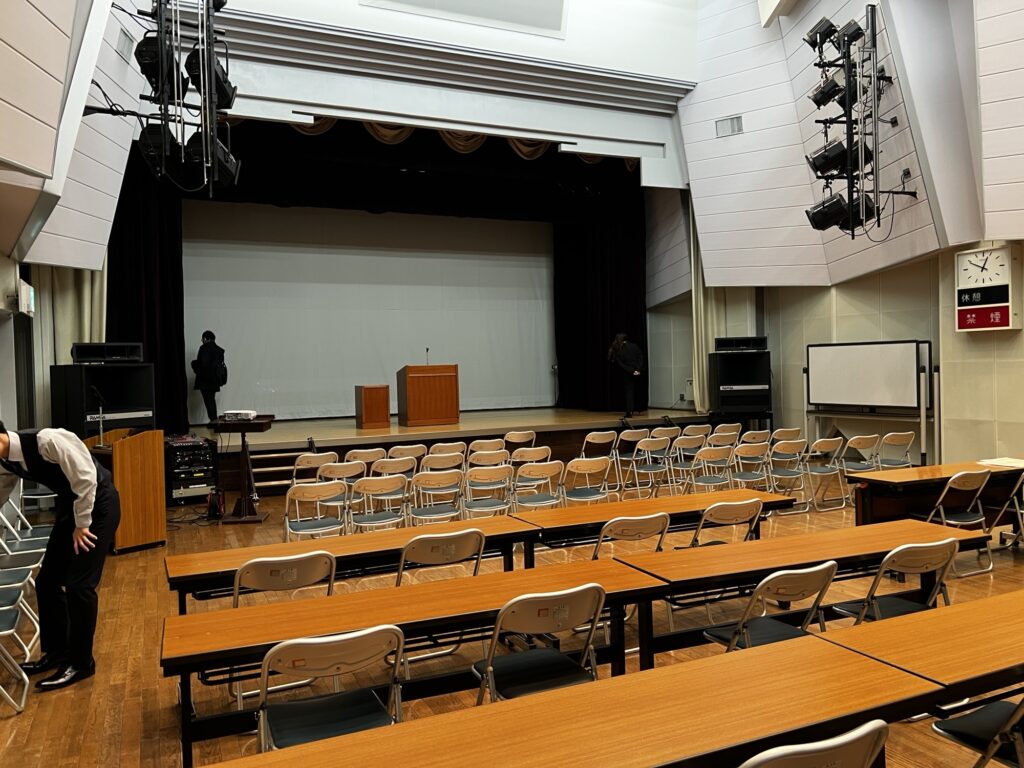 このように近くの公民館のホールを借りて行います。