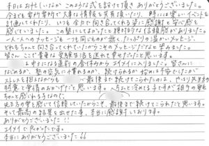 先生方の熱い指導に答えられずに申し訳なく、親として歯がゆい時期にも寄り添っていただき本当にありがとうございました。
