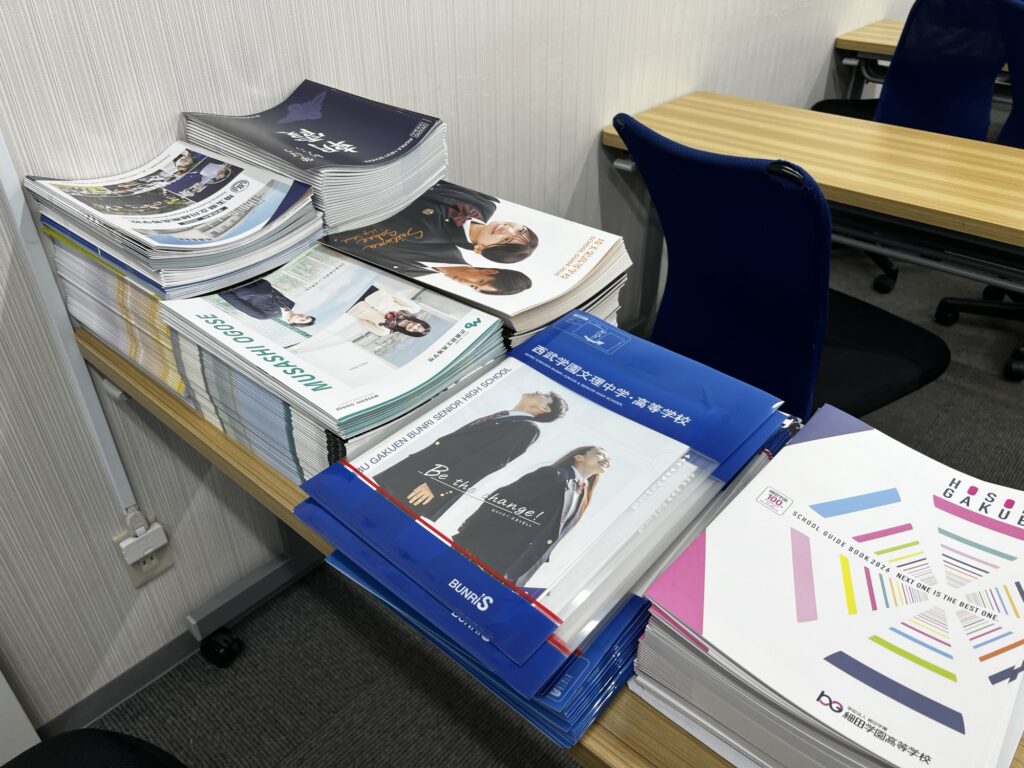 EIMEIの先輩たちが良く進学する私立高校のパンフレットも取り寄せ、配布しました!