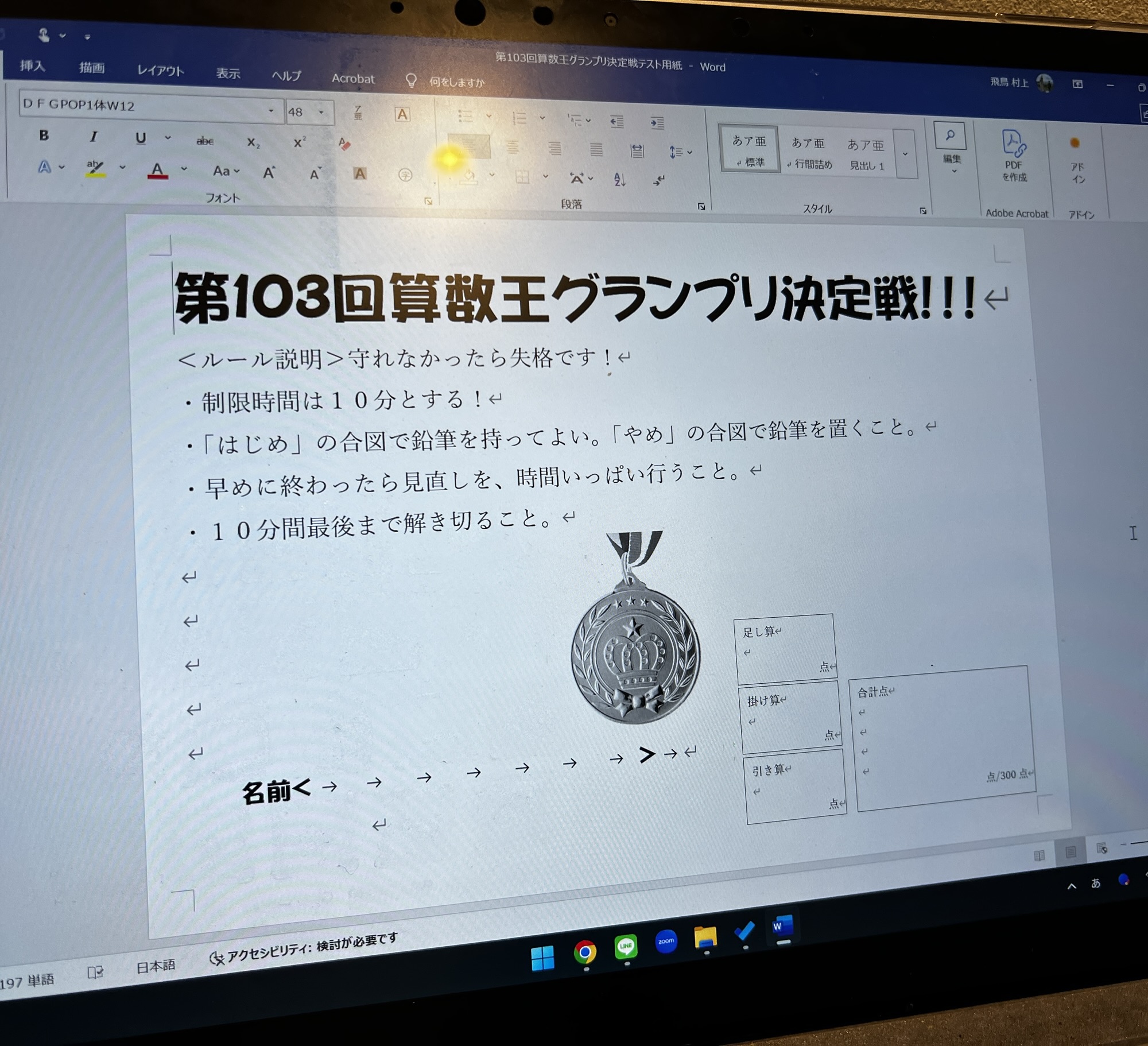 昨日の授業にて、小学生 算数王グランプリを行ったのでその途中経過を報告!!