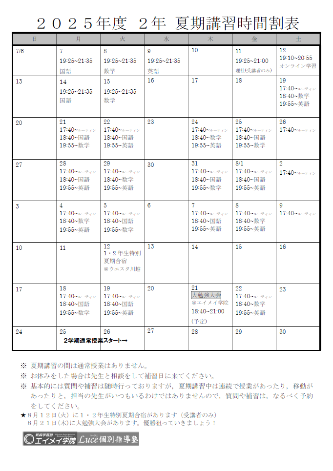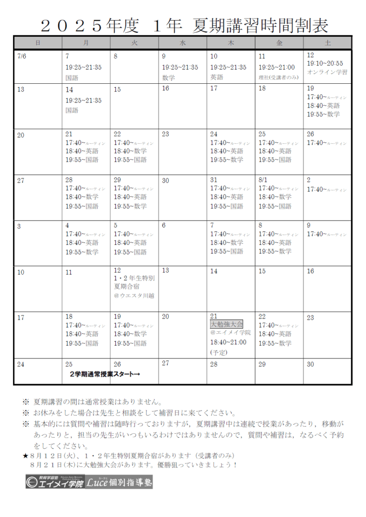 エイメイ学院では7月19日より夏期講習がスタートいたします!