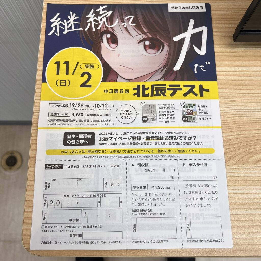 11月2日(日)実施の第6回北辰テストのお申し込みについて