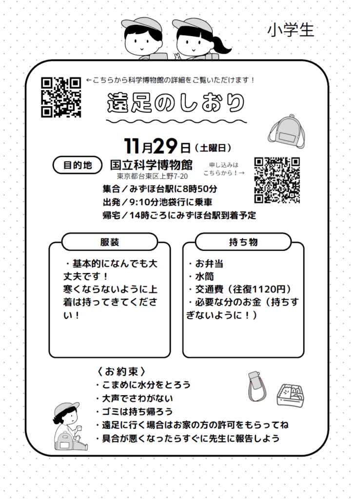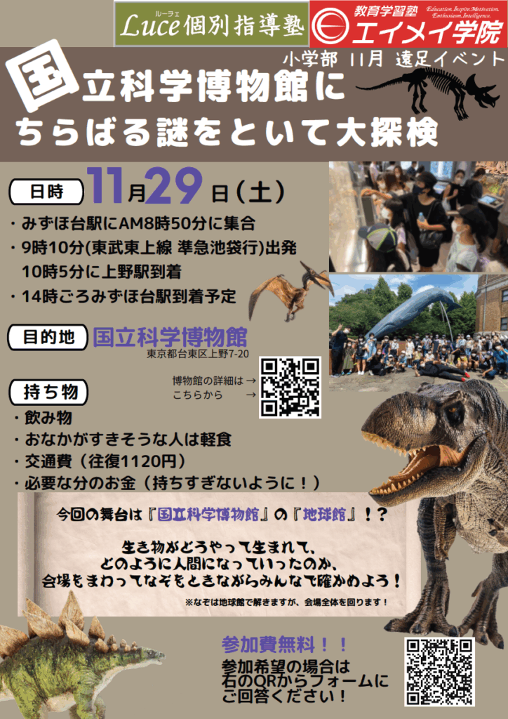 【みずほ台】小学生遠足💨国立科学博物館へ!謎解きも開催🔎詳細&応募フォームはコチラから!