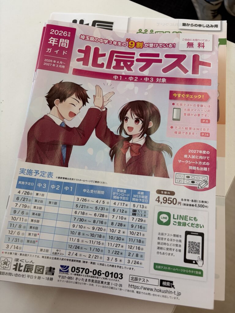 これは北辰テストの範囲や日程等が載っていますので保存版です