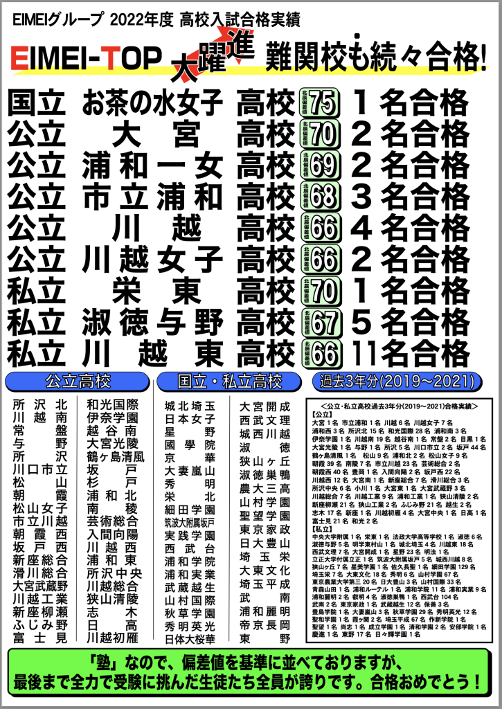 今現在、エイメイ学院・明成個別は、東武東上線に14校舎と30年以上の歴史があり
