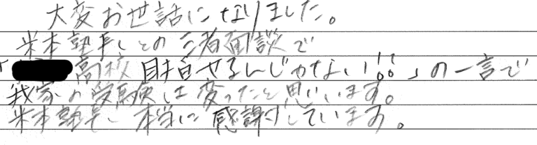 大変お世話になりました。 塾長との三者面談で「〇〇高校目指せるんじゃない!!」の一言で我が家の受験は […] -