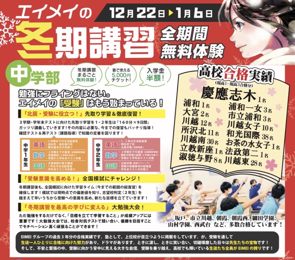 富士見市|ふじみ野市|ふじみ野から駅徒歩5分の学習塾。集団指導と個別指導で成績が上がる。高校受験|大学受験