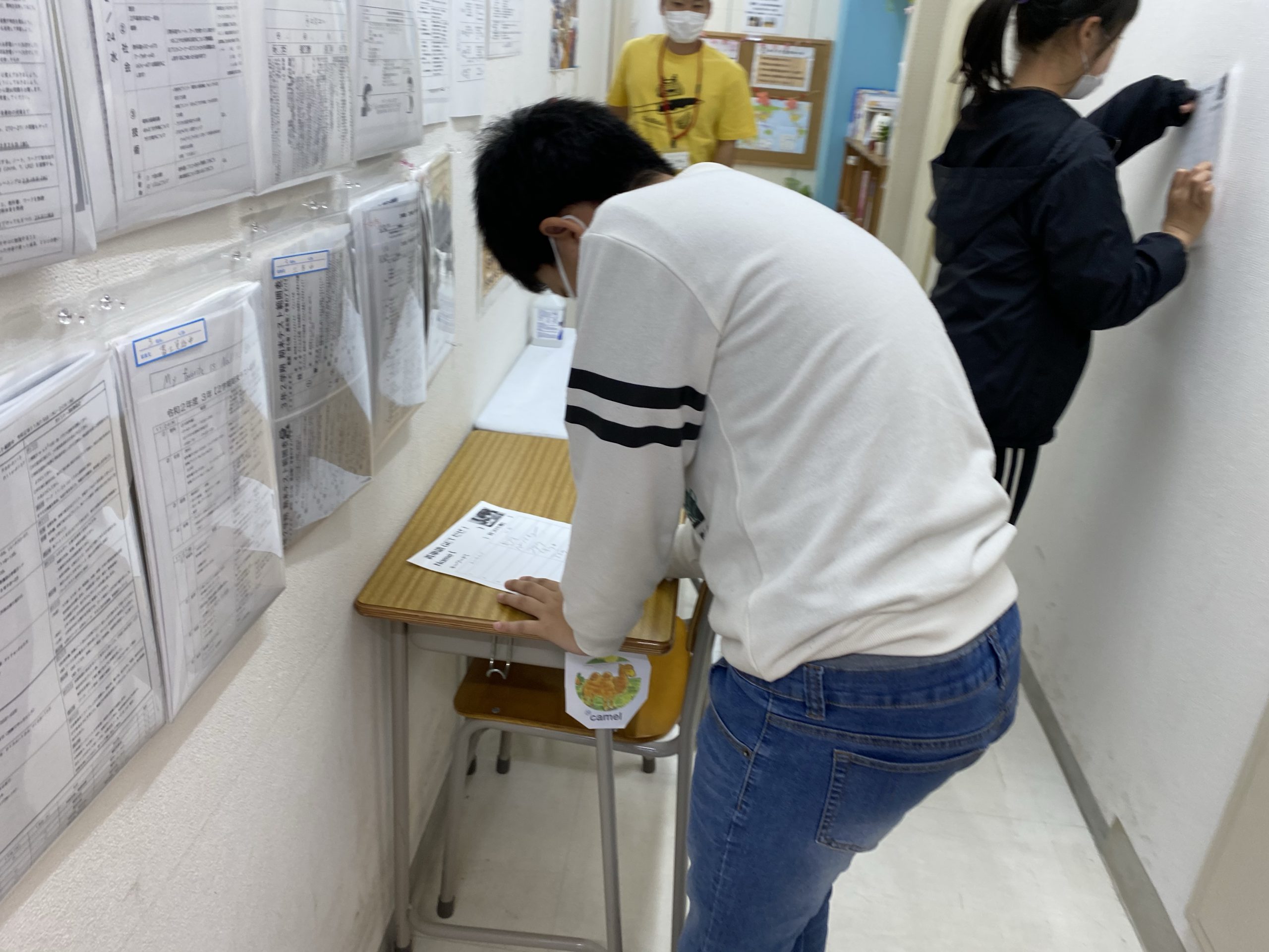 校舎の至るところに貼り出された英単語を探し、書きとる!