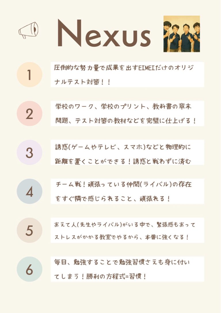 圧倒的な努力量で成果を出す!定期テスト対策のNexus!