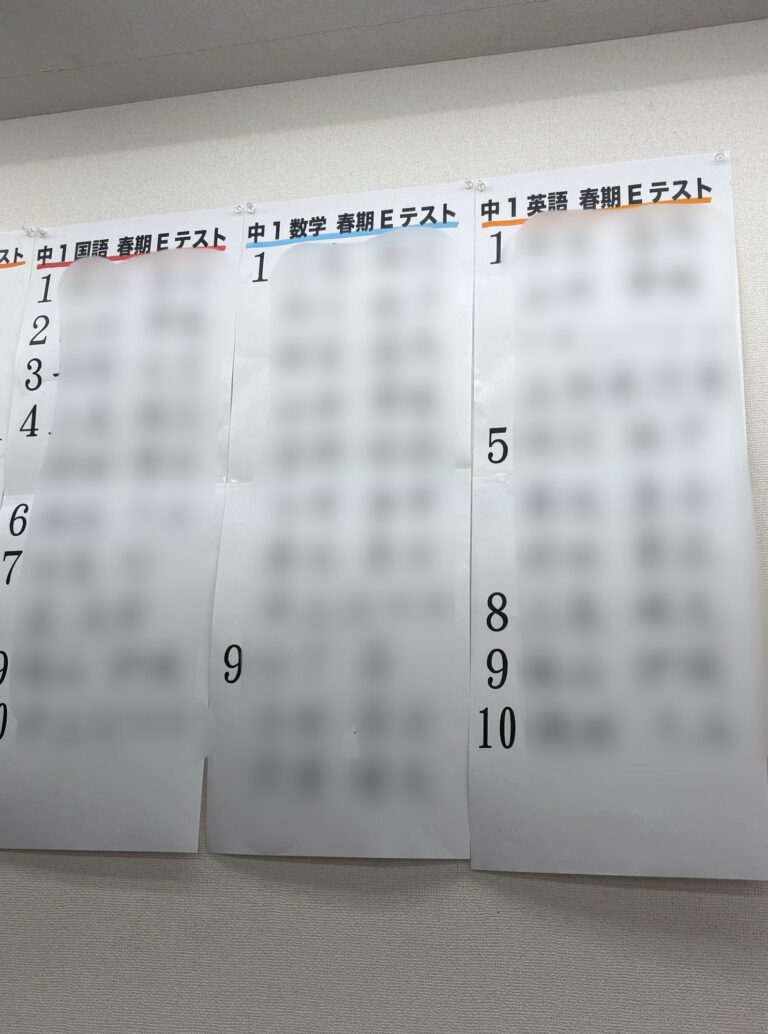 春休みの最後に行ったEテストの順位を教室に貼り出しました! 各教科ごとの結果で順位を出しています! […] -