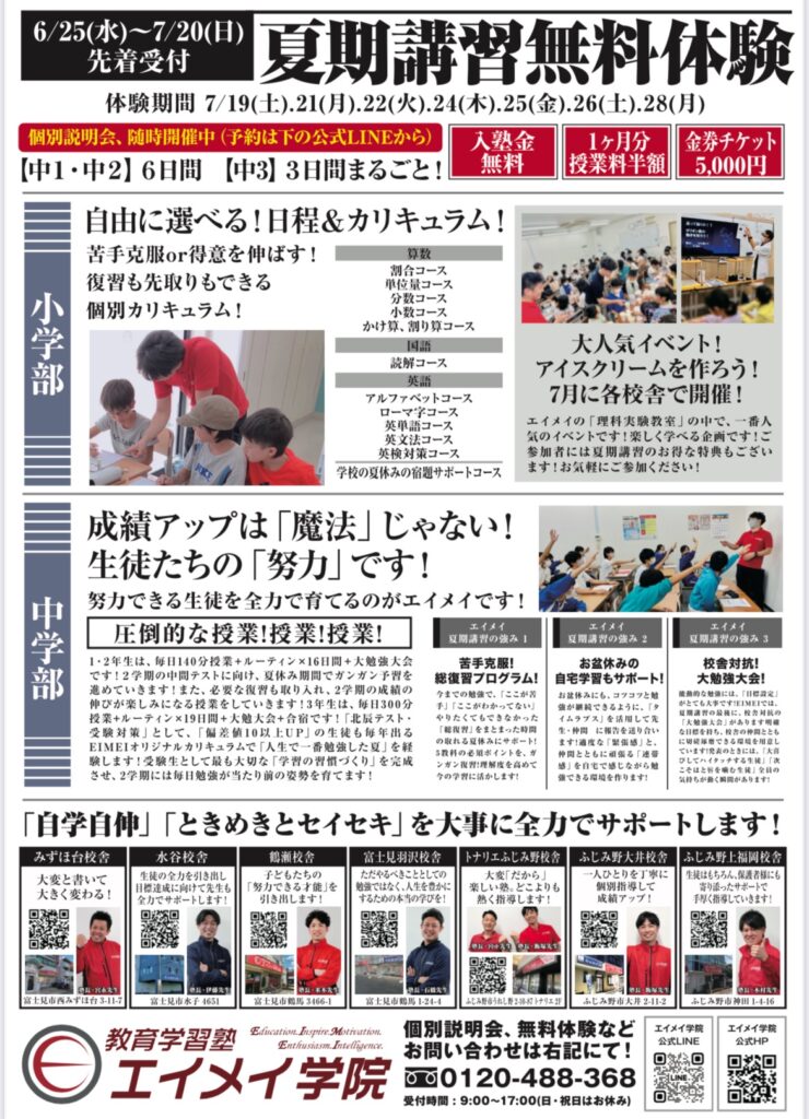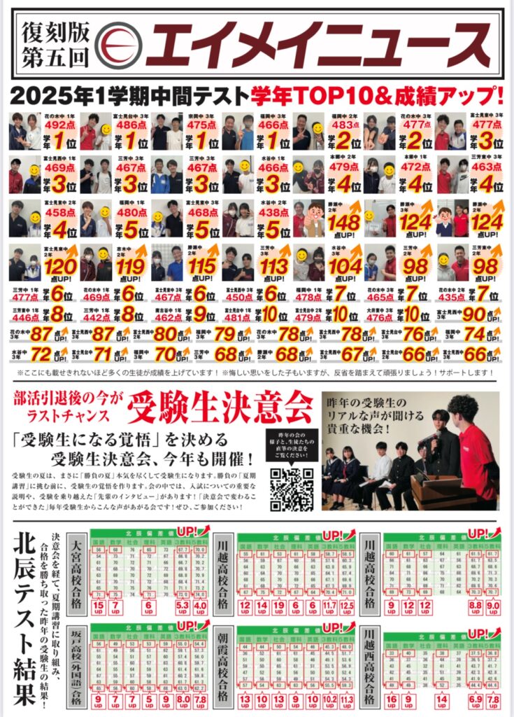 だからこそ、期末テストではエイメイ生全員の成績を上げていきたいと強く思っています。