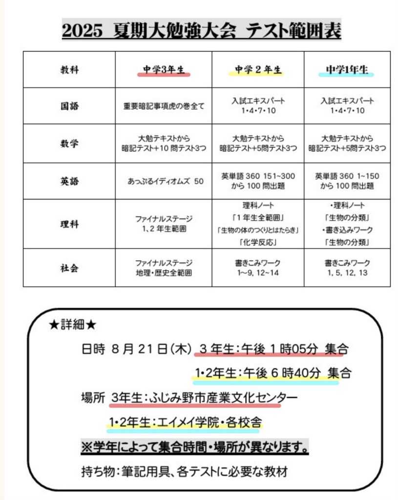来週8月21日(木)には、いよいよ夏期大勉強大会がやってくる☀️