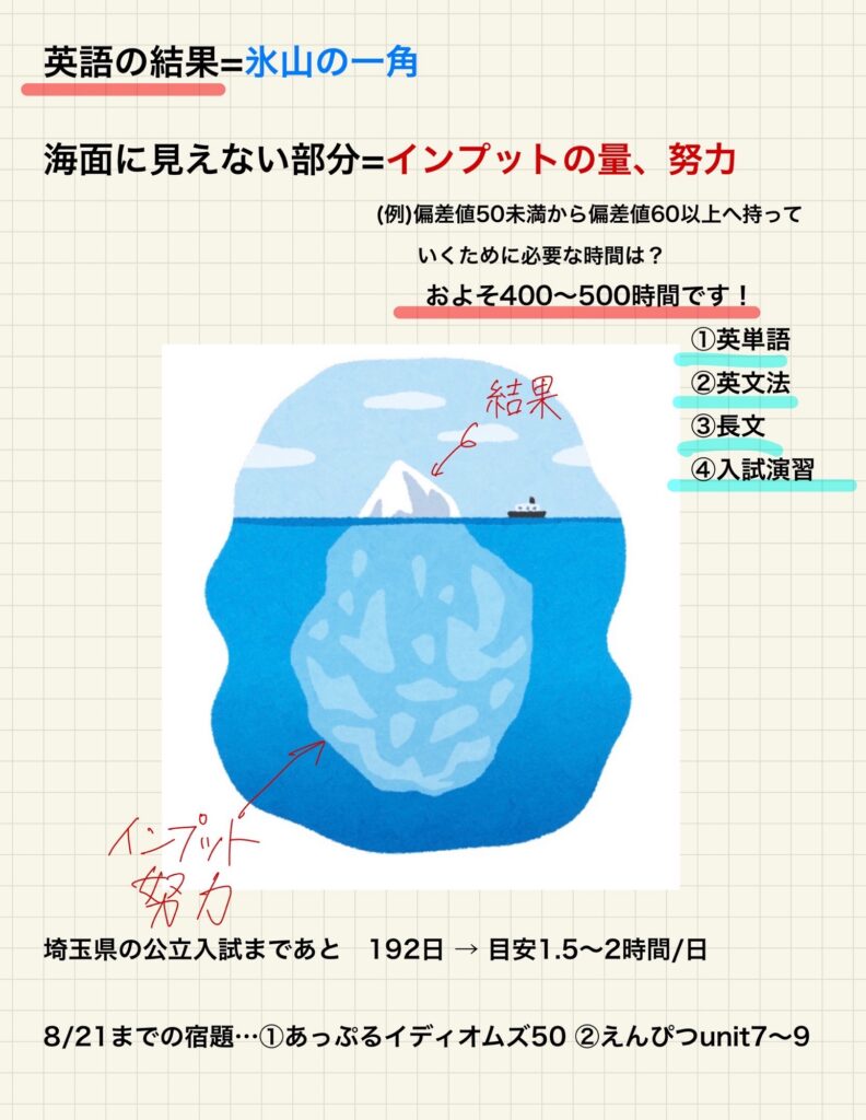 毎日1.5〜2時間を目安に、氷山の下の部分を大きくさせていきましょう💪