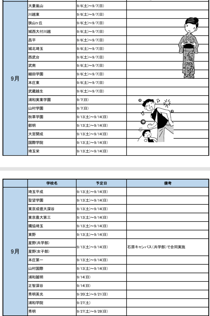 以下に、9月の文化祭情報を載せておきます!