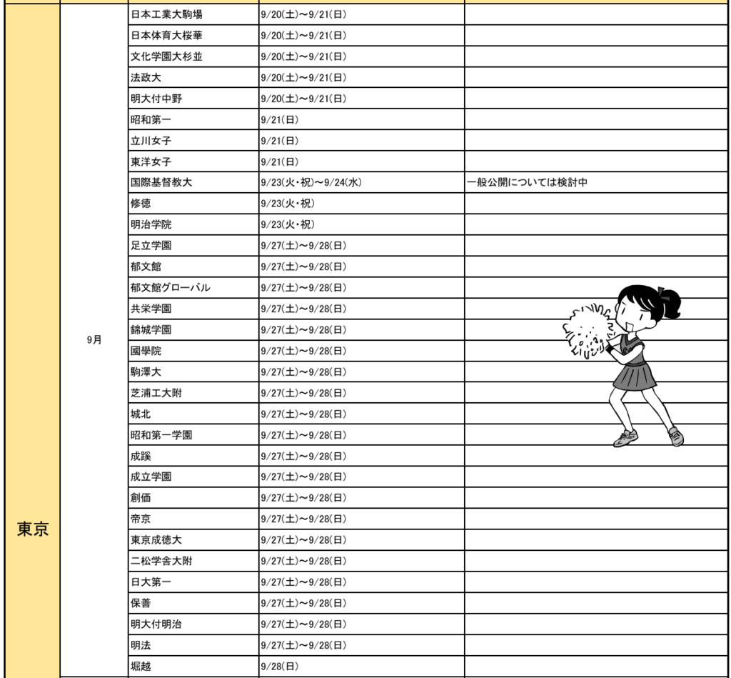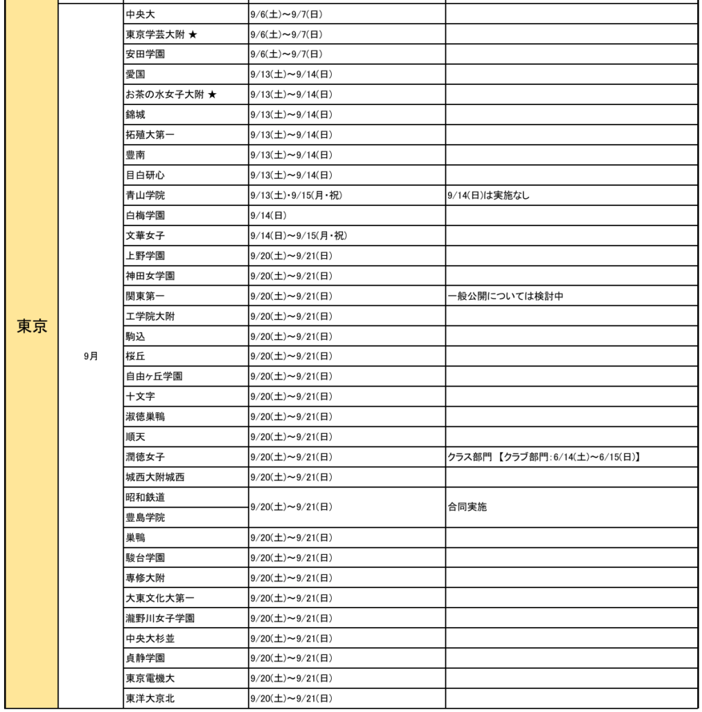 東京都私立(国立★)高校、9月文化祭(北辰HPより)