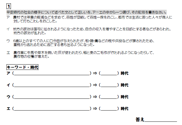 この時代に起きたことを選べであったり、