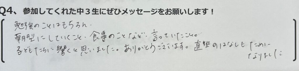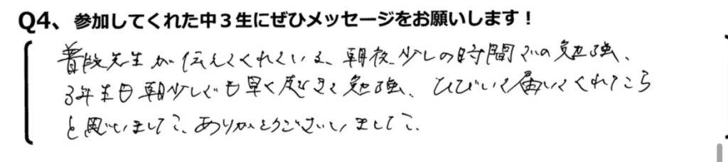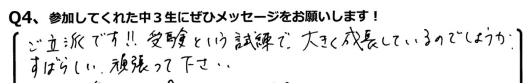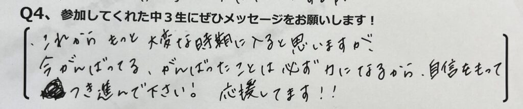 まさに受験勉強中の中3生、Kくん、Kさんから、