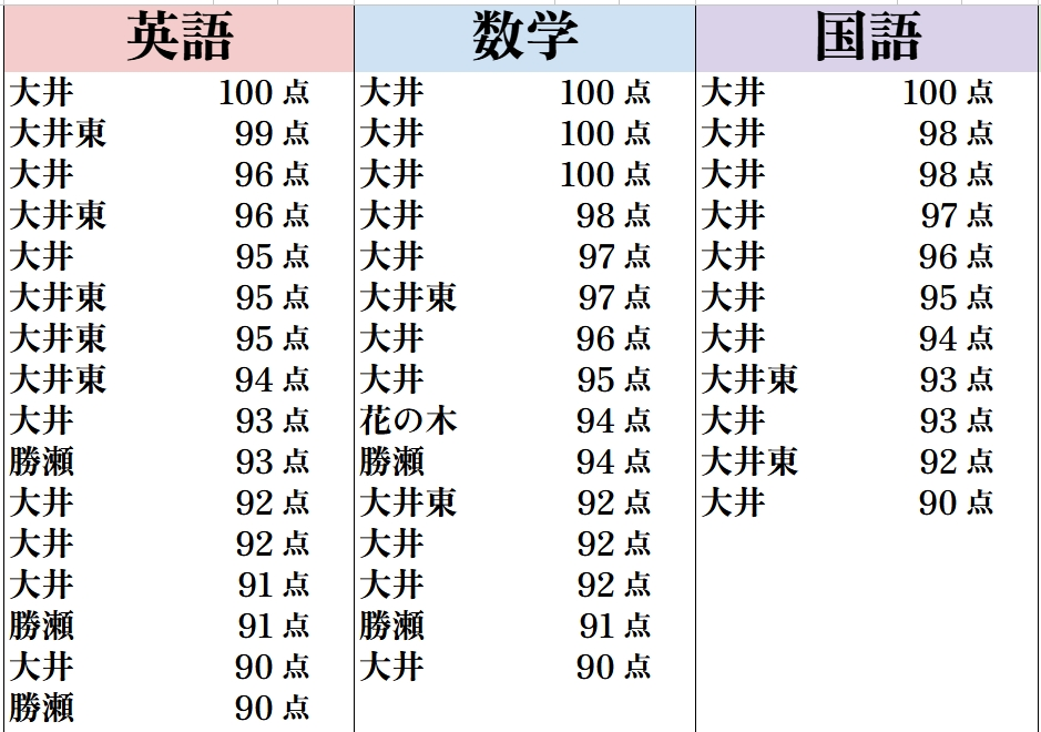 全教科のテスト用紙を広げて、満面の笑みで報告してくれました!!!