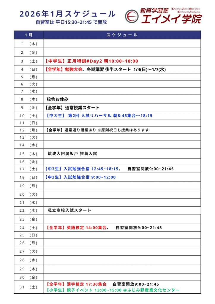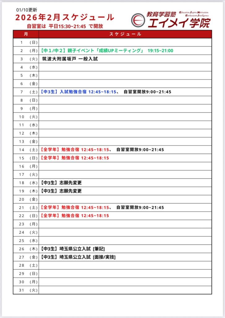 以下は、1月と2月のスケジュールです!