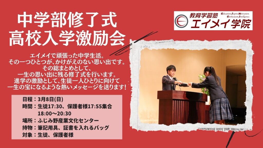 会の後は写真撮影等もございますし、一生の思い出となりますため、生徒のみんなも、保護者の皆様もどうかご出席ください!