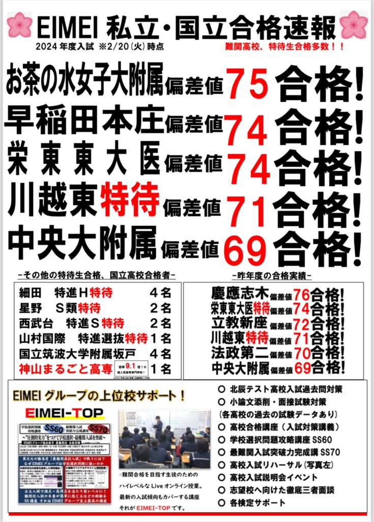 【鶴瀬】私立・国立合格!出揃いました🌸