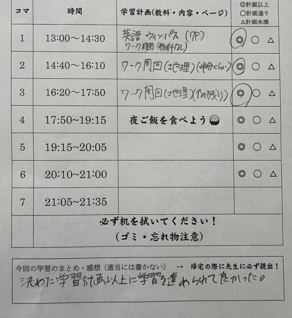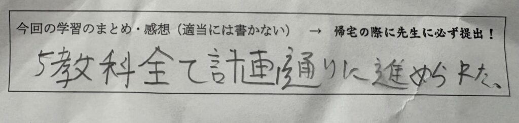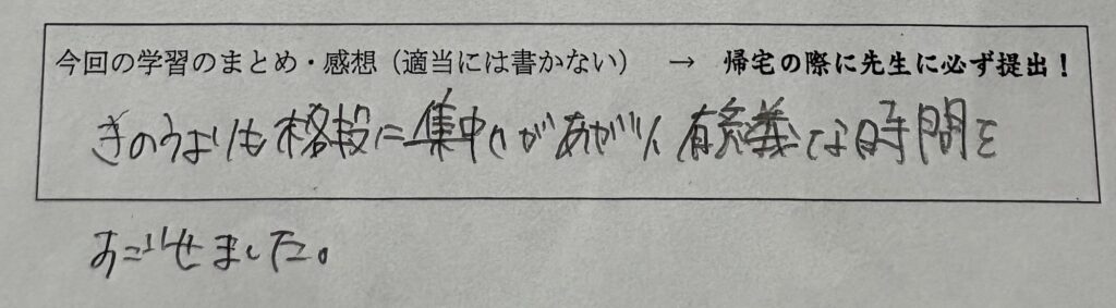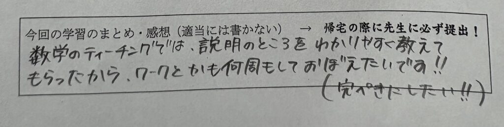 (保護者様は、家ではその努力を褒めてあげてくださいね!)
