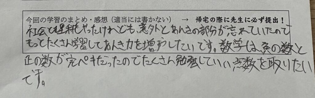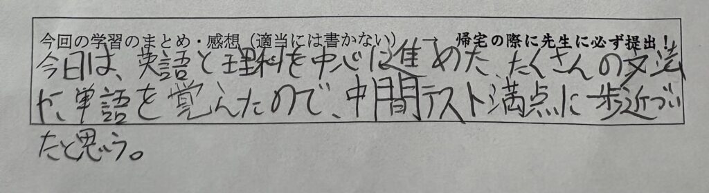 高等部に通う生徒が、高校生の中間テストで結果を出したように、今後結果を出すためには必要な土台作りを中学生の”今”しているのだと思います。