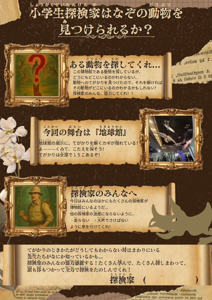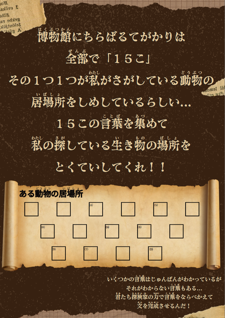 小学生探検家は、博物館に散らばる謎を解いて動物を見つけることができるのか?