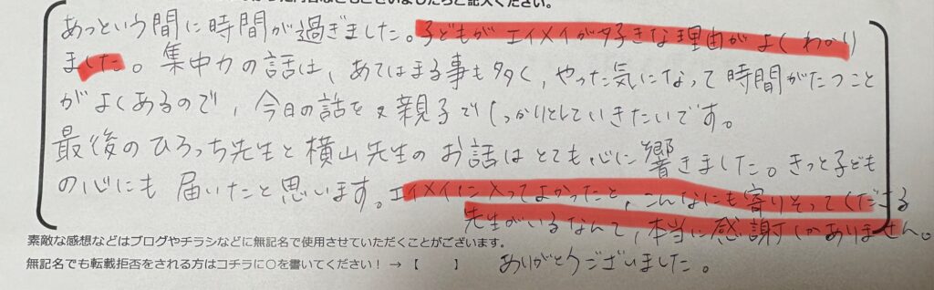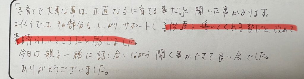 参加した保護者様も好評の嵐でしたので、一部ご紹介します(^^)