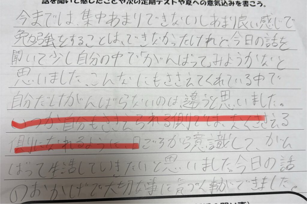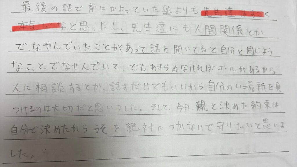 普通の塾だったら、そこまで踏み込んだ話はきっとしない。